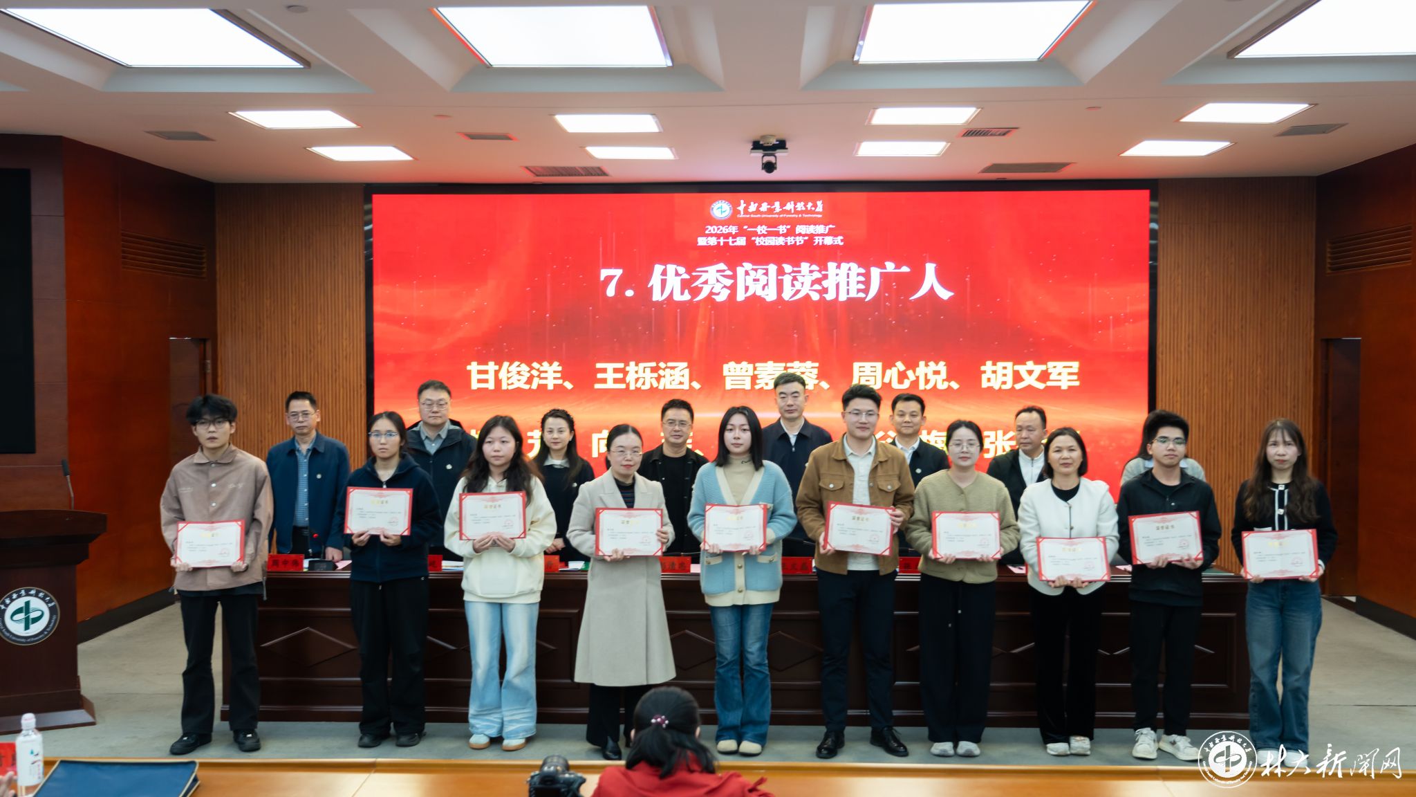 会上总结了2025年阅读推广工作,并对2025年“优秀组织奖”“书香班级奖”“优秀读书报告奖”“优秀阅读推广人”等7类奖项获奖师生进行表彰。