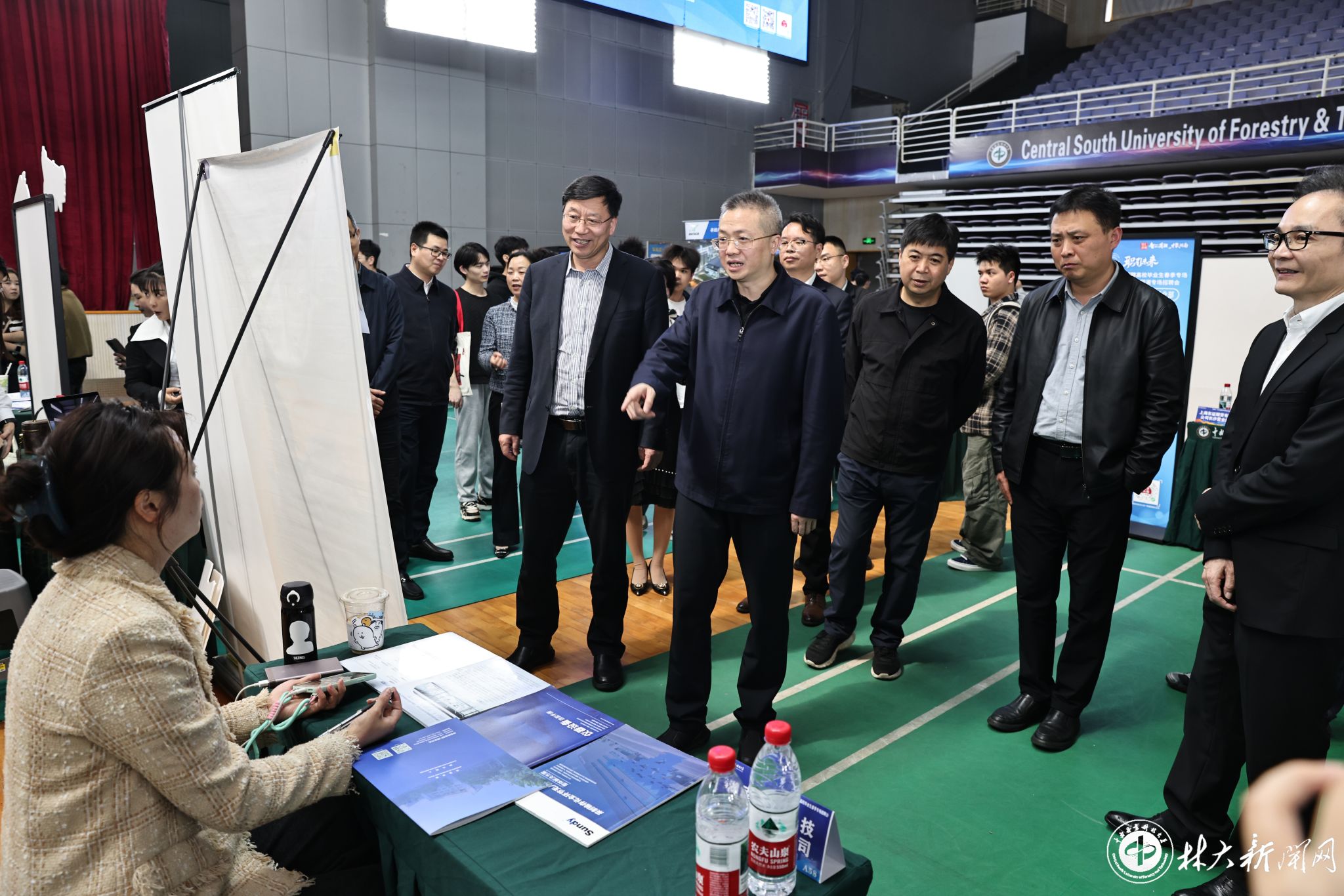 【林大网讯】(文/就业指导中心)4月23日,由中南林业科技大学、长沙市人力资源和社会保障局、长沙市工商业联合会联合主办的“职引未来”2026年全国城市联合招聘高校毕业生春季专场暨“校友回湘”专场招聘会在我校体育艺术馆举行。长沙市副市长、市工商业联合会(总商会)主席康镇麟,学校党委书记吴义强院士出席活动。