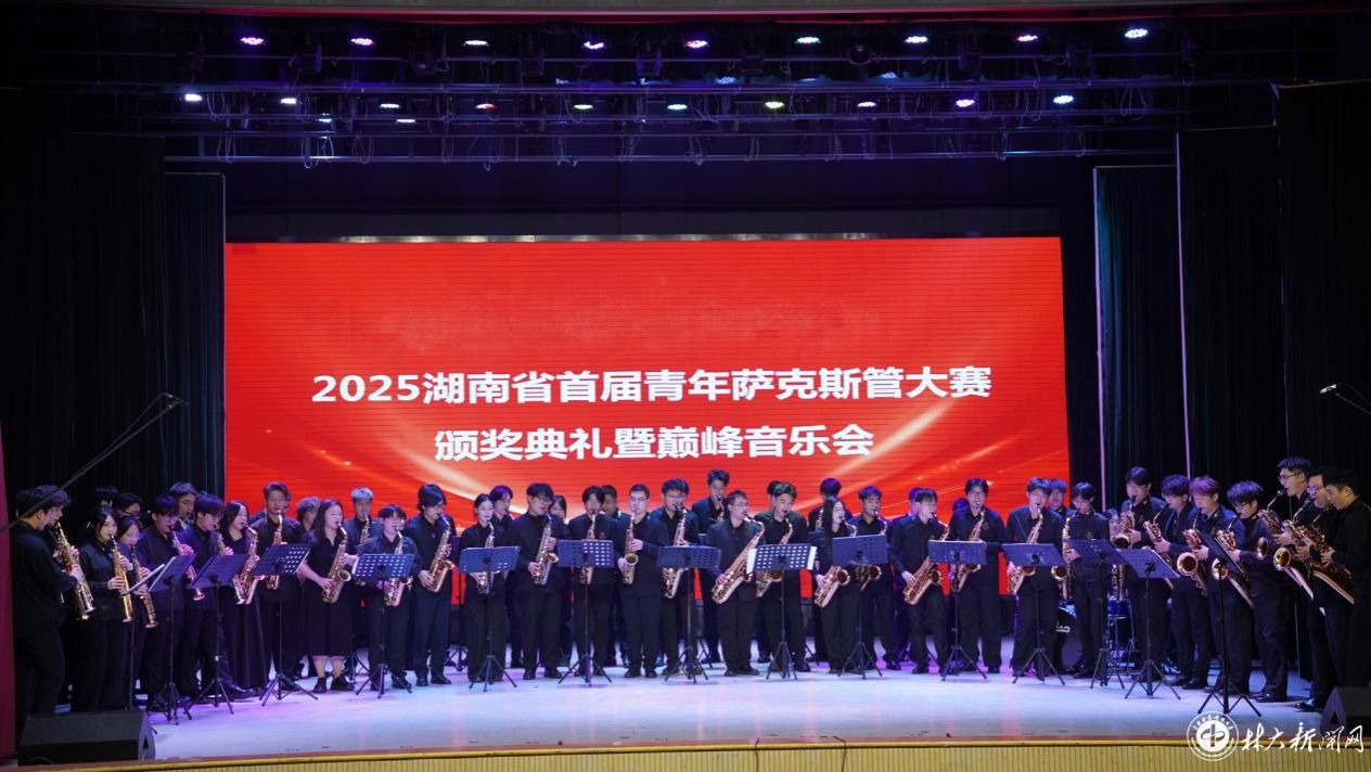 【林大网讯】(文/体育与音乐学院)10月25日晚,由湖南省音乐家协会管乐学会主办,我校体育与音乐学院承办的2025湖南省首届青年萨克斯管大赛颁奖典礼暨巅峰音乐会在雅韵堂举行。湖南省音乐家协会副主席、湖南工商大学音乐学院院长肖鸣,湖南省音协管乐学会会长张鹏,学校党委委员、宣传统战部部长方小斌出席活动。