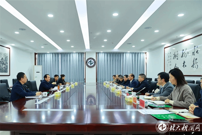 尹健代表学校对彭小国一行表示热烈欢迎,对中国林业教育学会长期以来给予学校发展的支持表示衷心感谢。他指出,在国家林草局及学会的鼎力支持下,学校成功获批国家林草局重点实验室、工程技术研究中心、定位观测研究站等平台。学校始终聚焦林草学科高质量发展,充分利用这些平台,培养出了大批林业行业领军人才和骨干力量,为我国林业事业发展提供了坚实的人才支撑和技术保障。他表示,学校将继续主动服务生态文明建设、“双碳”战略、美丽中国建设等国家重大需求,为绿色中国建设贡献更多“中南林力量”。
