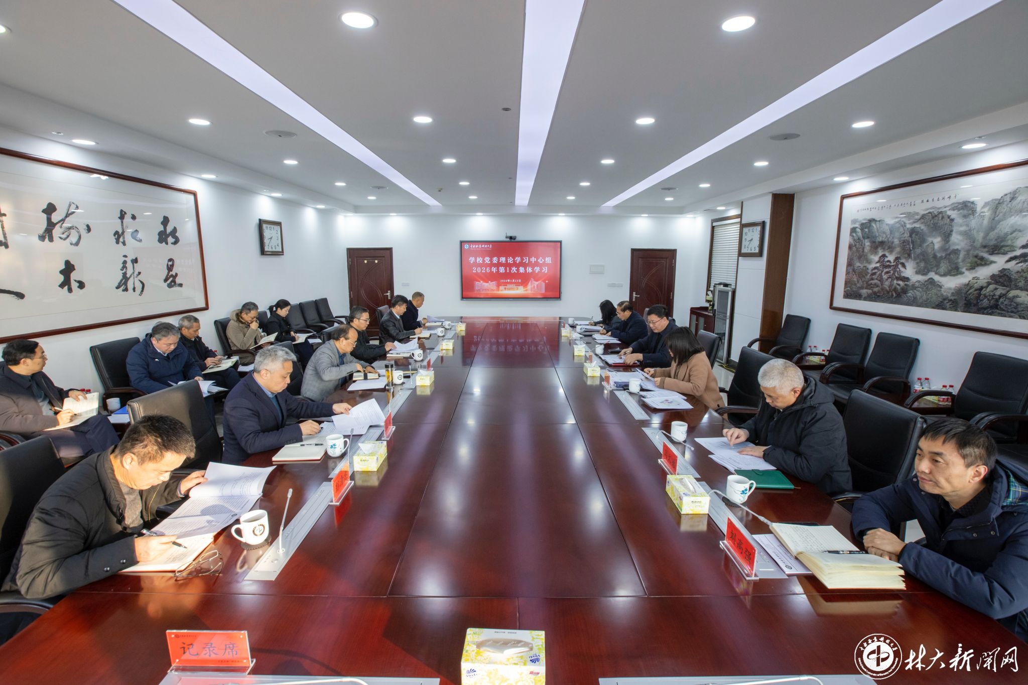【林大网讯】(文/宣传统战部)1月23日上午,学校党委理论学习中心组开展2026年第1次集体学习,进一步统一思想,深化认识,为开好民主生活会打牢思想基础。学校党委书记吴义强院士主持会议并作中心发言。校长仇怡领学习近平总书记在中央政治局民主生活会上的重要讲话精神并作表态发言,纪委书记刘杏花、副校长张琳领学相关重要讲话和文件精神,其他中心组成员结合民主生活会会前准备情况逐一作交流发言。