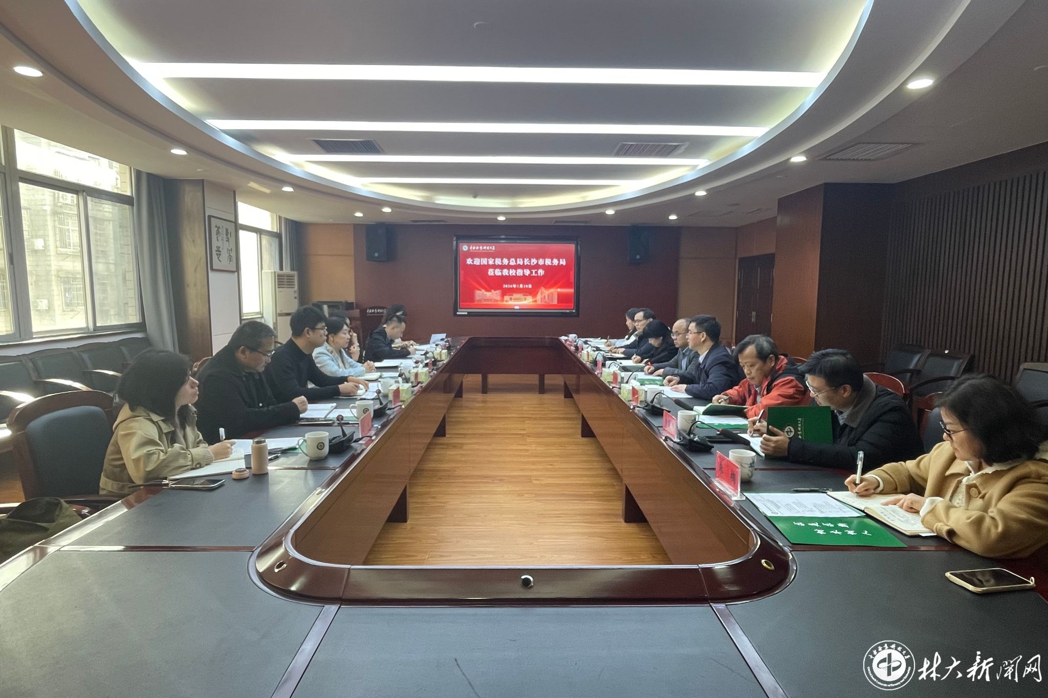 ▲国家税务总局长沙市税务局来校调研座谈会