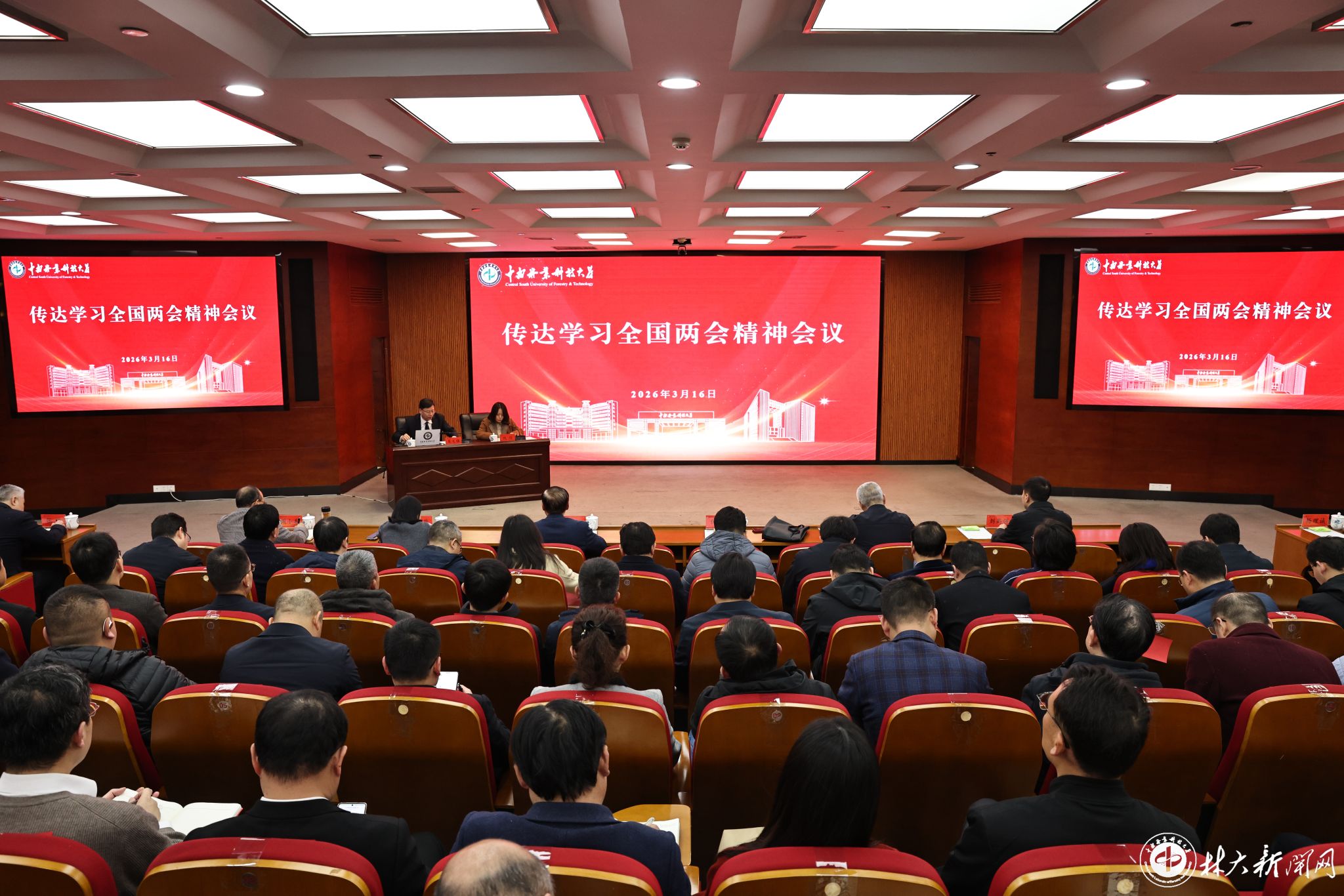 吴义强指出,今年两会是在“十四五”圆满收官、“十五五”开局起步关键节点召开的重要会议。全校上下要深入学习贯彻大会精神,进一步统一思想、守正创新、凝心聚力。要在政治引领上抓牢抓实,扎实做好省委巡视反馈意见整改工作、深入开展树立和践行正确政绩观学习教育、精心组织召开学校第九次党代会。在核心指标上聚力突破,全面推进新时代立德树人工程、全力冲击国家新一轮“双一流”学科、不断加快高能级创新平台建设、切实加强人才梯队和干部队伍建设。在内涵发展上持续深化,持续优化调整学院学科专业、做好“三定”工作后半篇文章、深化国际交流合作、举办办学115周年系列活动、进一步改善办学基本条件,为加快建设教育强国、科技强国、人才强国,全面推进中国式现代化贡献中南林力量。