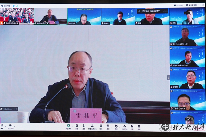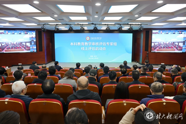 【林大网讯】(文/教务处)12月4日上午,学校在博文楼立德厅召开本科教育教学审核评估专家组线上评估启动会。评估专家组组长、南京林业大学校长勇强教授,评估专家组成员:中南大学副校长何军教授、湘潭大学副校长喻祖国教授、湖南财政经济学院党委副书记苏玲研究员、北京林业大学原副校长骆有庆教授、中国农业大学经济管理学院院长司伟教授、东北林业大学教务处处长李明泽教授、华南农业大学体育部主任卢三妹教授、华南师范大学软件学院院长曾碧卿教授、安徽师范大学音乐学院院长汪海元教授、青岛农业大学学生工作处处长王峰教授、湖南科技大学研究生院院长李海萍教授、湖南农业大学原教务处处长孙志良教授、山东农业大学化学与材料科学学院原院长艾仕云教授、中国地质大学(北京)经济管理学院原院长安海忠教授、浙江农林大学环境与资源学院副院长王懿祥教授、江南大学粮食发酵与食品生物制造国家工程研究中心原副主任丁重阳教授,省教育厅二级巡视员雷桂平、省教育厅高等教育处副处长王荣,项目管理员湖南科技大学教务处副处长蒋耀辉,项目秘书:湖南理工学院教务处副处长狄岱岳、湖南文理学院督查与评估处评估科科长郭奕伶、湖南科技大学教务处办公室主任李婷通过线上方式参加会议,学校全体在家校领导、全体处级实职干部、评建办全体成员在现场参加会议。会议由学校副校长王忠伟主持,中国工程院院士、校长吴义强出席会议并致辞。