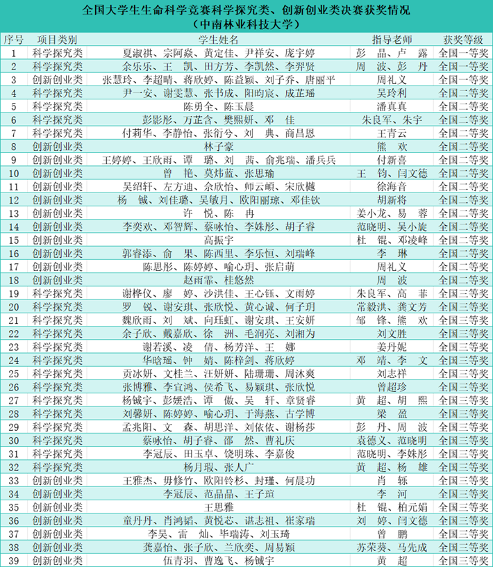 【林大网讯】(文/生命科学与技术学院)近期,全国大学生生命科学竞赛科学探究类、创新创业类决赛先后在烟台大学、兰州理工大学落下帷幕。我校学子共斩获一等奖3项,二等奖15项,三等奖21项,获奖数量创历史新高,学校获得赛事“优秀组织奖”。