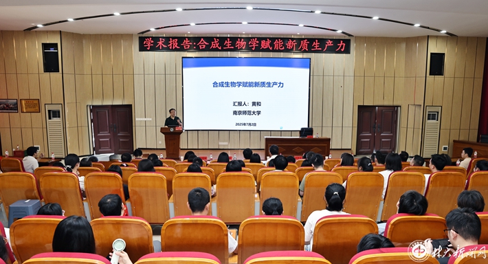 【林大网讯】(文/科学研究部)7月2日上午,南京师范大学黄和院士应邀来校讲学,并作题为“合成生物学赋能新质生产力”的学术报告。学校党委书记吴义强院士,副校长刘高强出席报告会。报告会由副校长尹双凤主持。