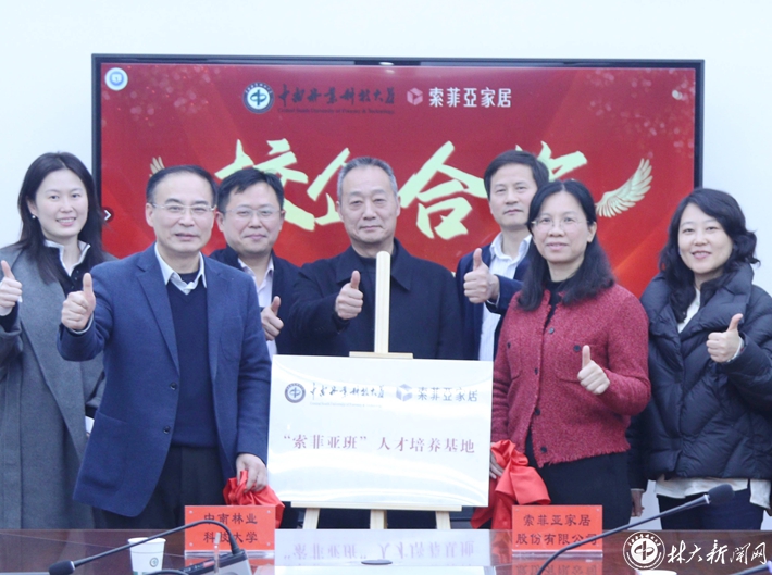 【林大网讯】(文/材料科学与工程学院)3月14日,学校与索菲亚家居股份有限公司在逸夫楼604会议室举行“索菲亚班”校企合作签约及授牌仪式。副校长尹健、索菲亚集团人力资源中心总经理叶留菊出席会议并讲话。