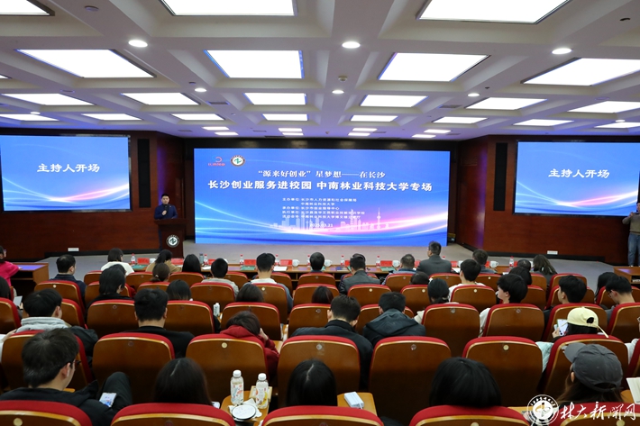 【林大网讯】(文/教务处)3月21日下午,“‘源来好创业’——星梦想,在长沙”长沙创业服务进校园活动在我校博文楼立德厅举行。副校长尹健、长沙市人社局副局长刘中海、长沙市创业指导中心副主任何权恒出席活动,学校相关部门负责人、创业学生代表300余人参加活动。
