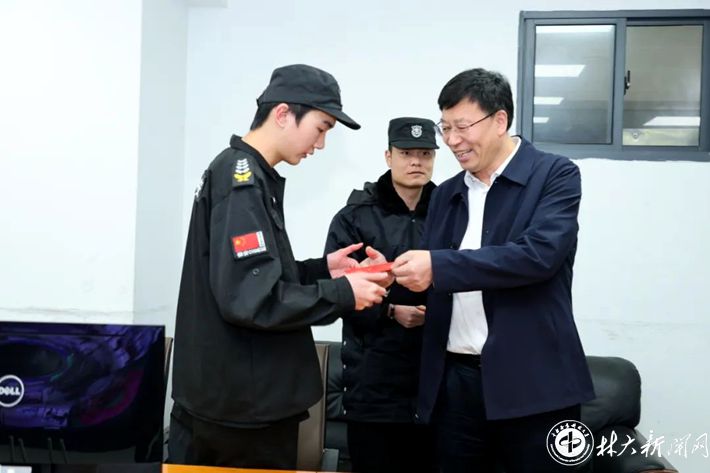 ▲中国工程院院士、校党委书记吴义强一行慰问学校视频监控指挥中心工作人员