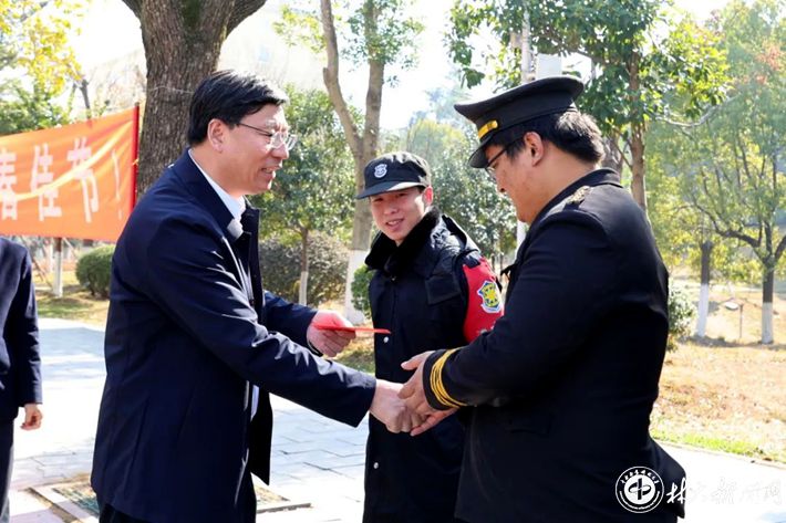 ▲中国工程院院士、校党委书记吴义强一行慰问学校大门门卫室工作人员