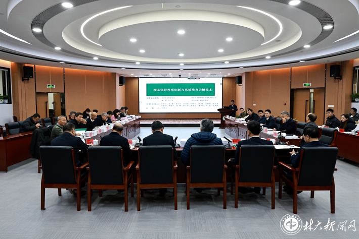 ▲中国林学会组织专家对我校主持完成的“油茶高产品种创制及花果调控关键技术”科技成果进行评价