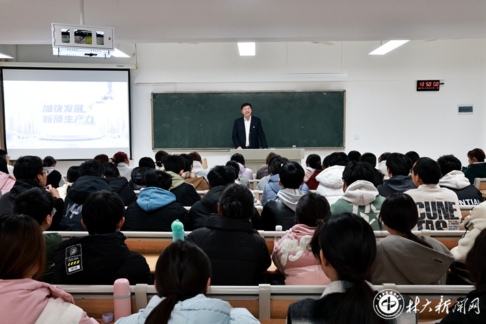 ▲吴义强为学生专题讲授《加快发展新质生产力》