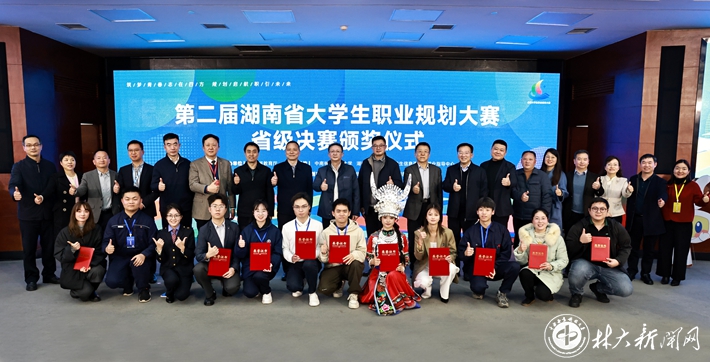 【林大网讯】(文/招生就业处)1月11日-12日,第二届湖南省大学生职业规划大赛省级决赛在我校举行。省委教育工委委员、省教育厅副厅长兰勇,湖南出版投资控股集团党委委员、中南出版传媒集团董事熊名辉,学校党委委员、副校长刘高强出席颁奖典礼。