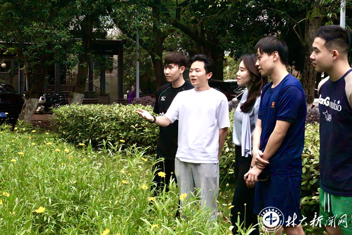 ▲王清扬带领学生开展“识花认树”活动