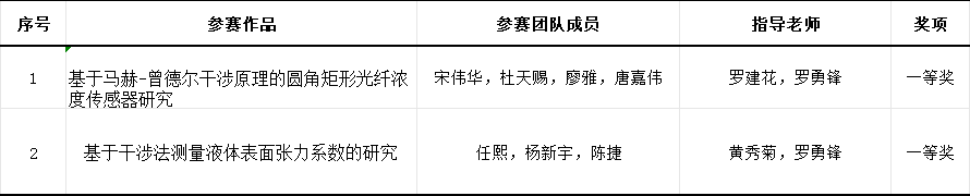 我校参加第十届全国大学生物理实验竞赛(创新)全国总决赛获奖名单