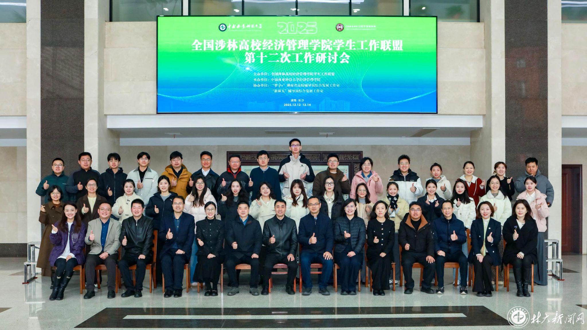 【林大网讯】(文/经济管理学院)12月13日—14日,全国涉林高校经济管理学院学生工作联盟第十二次研讨会在我校召开。副校长刘高强出席会议并讲话。会议聚焦“人工智能时代涉林高校思政育人工作的创新实践与探索”主题,来自福建农林大学、北京林业大学、南京林业大学、西北农林科技大学、东北林业大学、西南林业大学、浙江农林大学等7所涉林高校经管学院的学生工作负责人和辅导员参会。