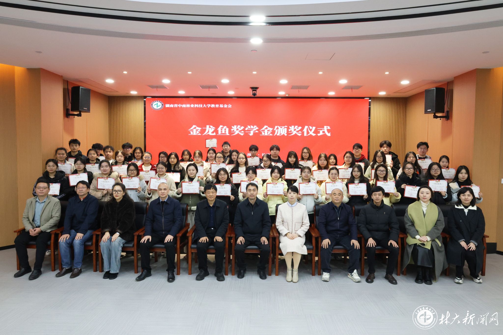【林大网讯】(文/校友事务与发展联络处)1月7日上午,2024-2025学年“中南林业科技大学-金龙鱼奖学金”颁奖仪式在崇德楼四楼四会议室举行。益海嘉里(湖南)粮油食品有限公司副总经理赵春利、学校副校长刘高强出席活动。相关部门(单位)负责人、全体获奖学生参加。仪式由学校教育基金会秘书长严爱军主持。