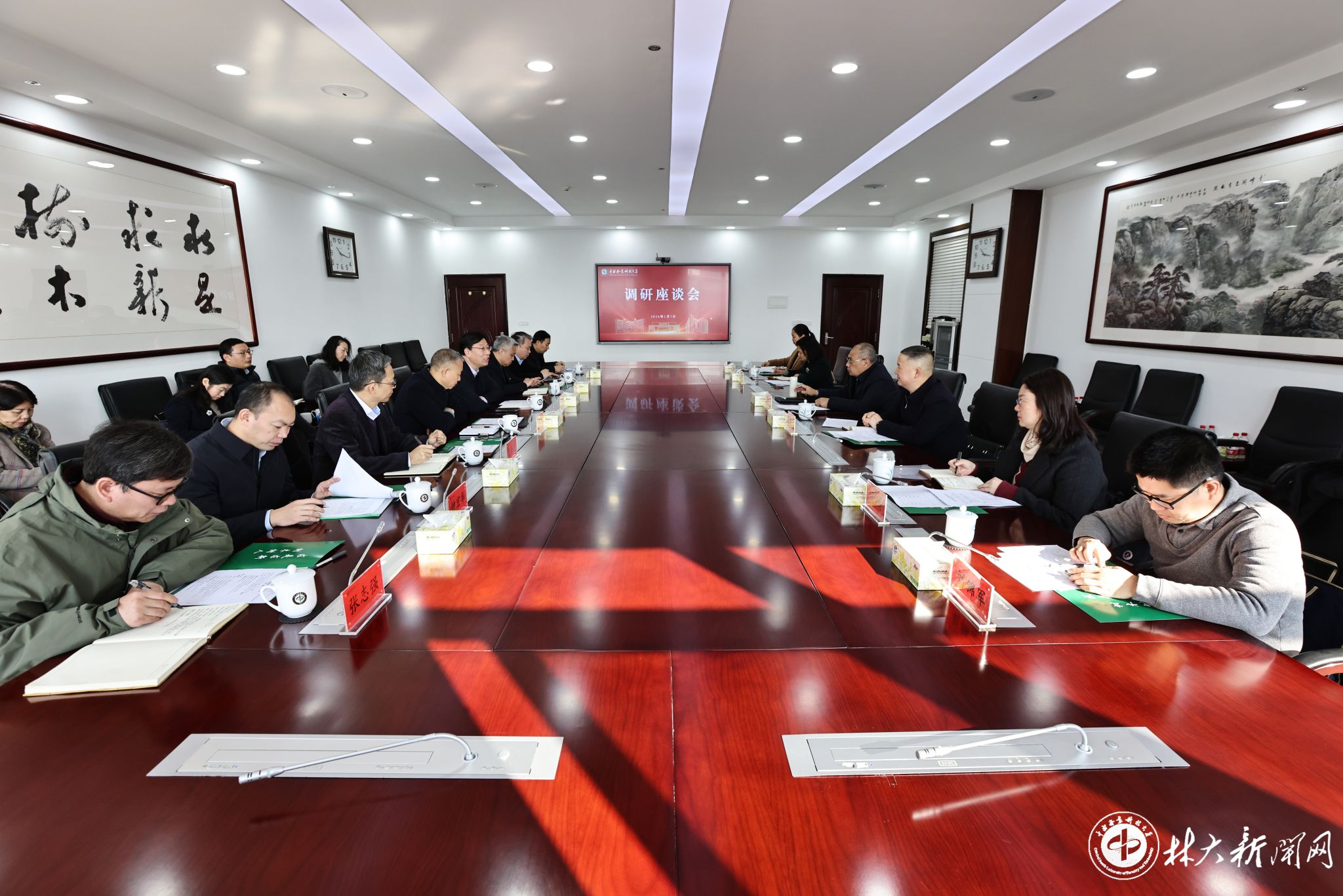 会前,潘碧灵一行考察了学校林业自然资源博物馆、岳麓山实验室木竹博物馆,察看珍稀标本、科研成果展,详细了解林业种质资源的保存利用、木竹产业创新发展等方面的经验做法。