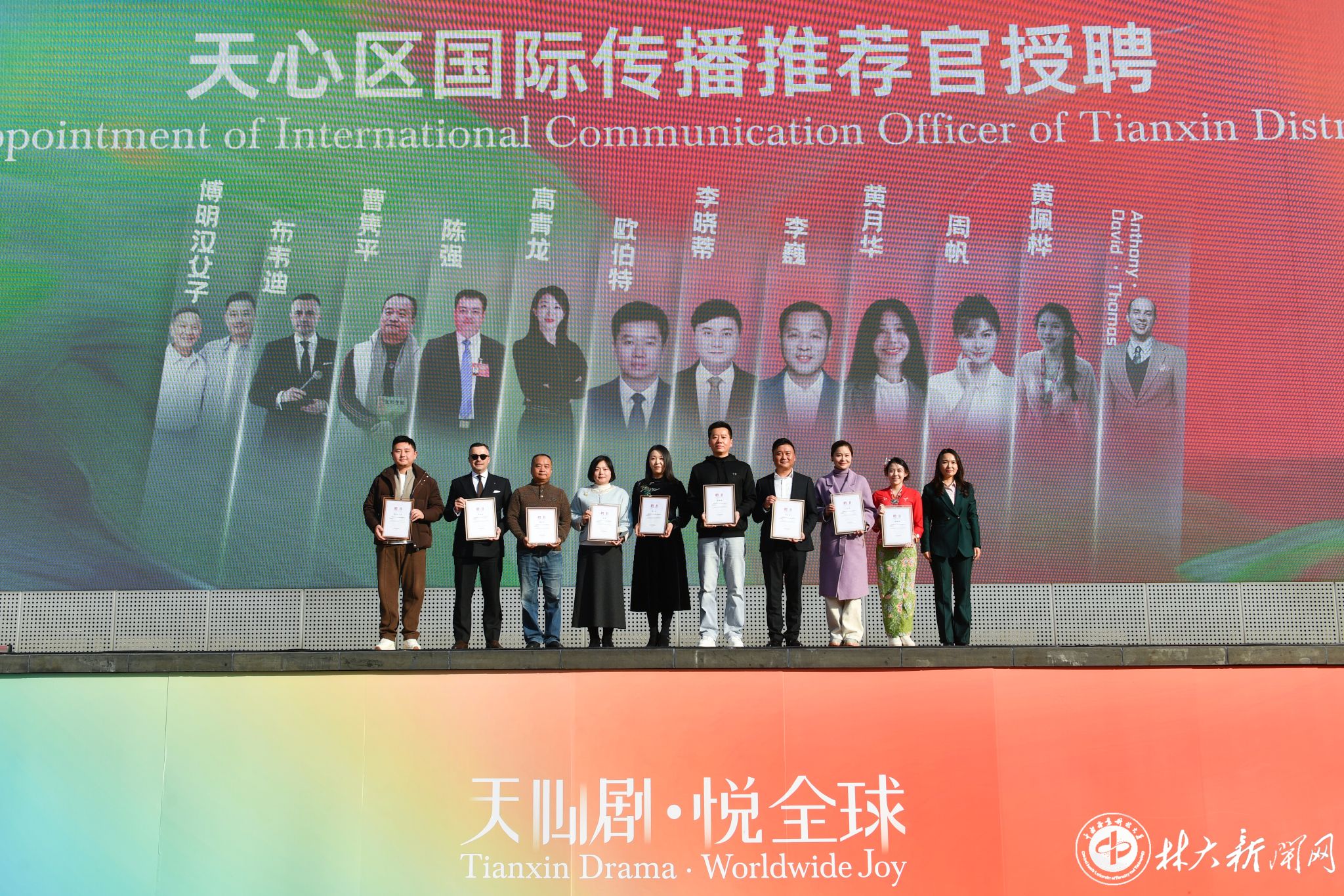 【林大网讯】(文/宣传统战部)1月13日,“天心剧·悦全球”戏剧嘉年华暨长沙天心区国际传播中心揭牌仪式举行。中心以“悦天心,悦全球”为主题,用鲜活内容解读城市魅力,形成政企校协同发力的传播生态。活动现场,我校被授聘为天心区国际传播中心成员单位,成为首批授牌的12家成员单位之一。