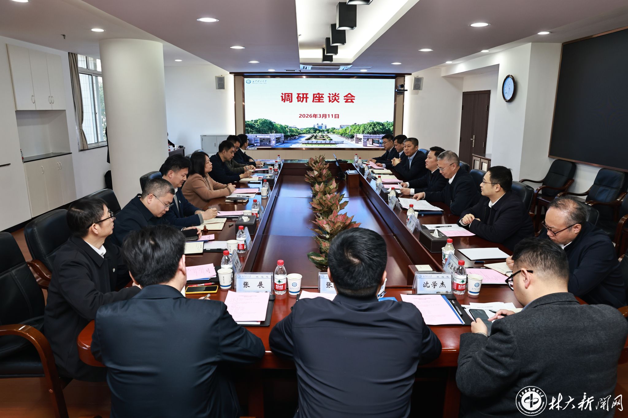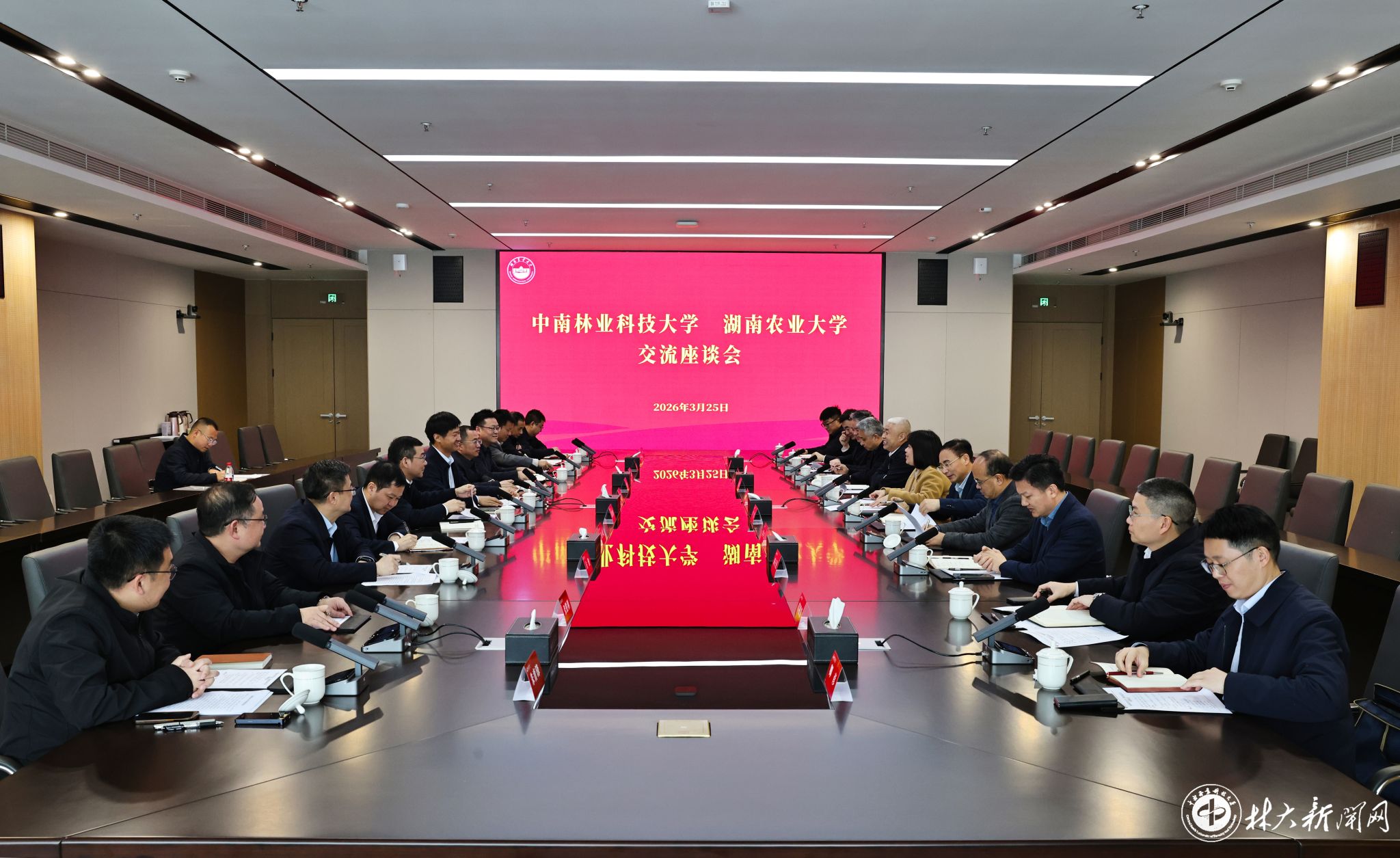 ▲学校与湖南农业大学调研座谈会