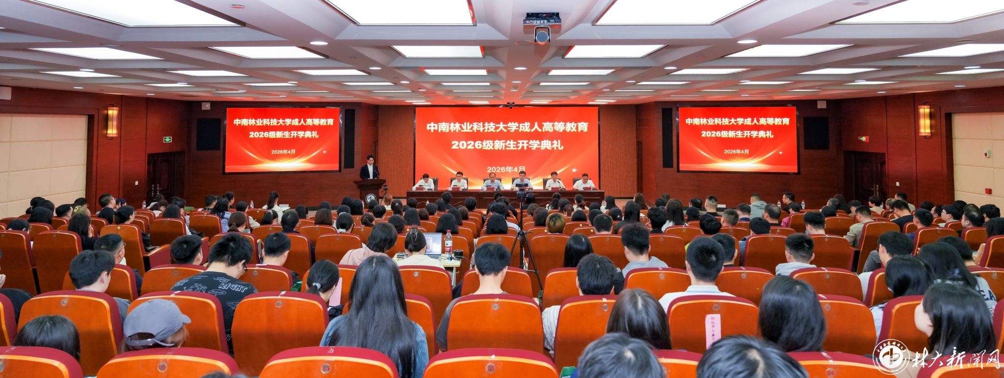 【林大网讯】(文/继续教育学院)4月11日上午,学校成人高等教育2026级新生开学典礼在博文楼立德厅举行。副校长尹健出席开学典礼并讲话。本科生院、继续教育学院等部门(单位)负责人,教师代表、优秀校友代表、继续教育学院和各校外教学点教职工代表及2026级全体新生参加典礼。典礼采用线上线下直播方式同步进行。