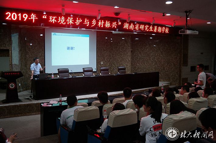 【林大网讯】(文/环境学院 蔡思琴)7月14日下午,南昌航空大学校长罗胜联教授应邀为2019年湖南省研究生暑期学校作了题为“重金属废水微生物处理技术研究进展”的学术报告。会议由环境科学与工程学院院长王平主持,全国各地的研究生学员聆听会议。