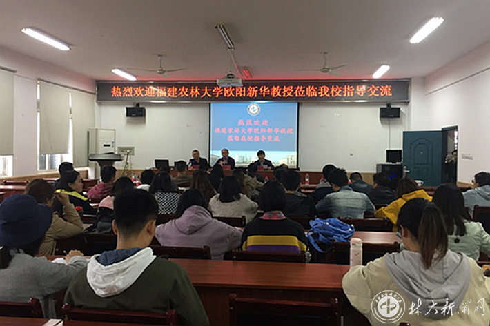 【林大网讯】【林大网讯】(文/材料科学与工程学院) 应材料科学与工程学院的邀请,福建农林大学欧阳新华教授于10月20日为材料科学与工程学院师生作了题为“Efficient organic solar cells by employing cellulose and its derivatives”的学术报告。学院师生共50余人参加了本次学术报告会,本次学术报告会由材料科学与工程学院张新民教授主持。