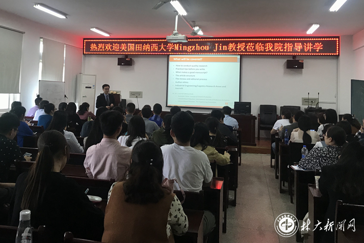 【林大网讯】(文/物流学院 姜晓华) 4月2日,美国田纳西大学金明洲教授应邀在逸夫楼作了题为“如何做好科研工作”的学术报告。来自湖南大学、中南大学以及我校物流学院、土木工程学院等校内外100余名师生参加。