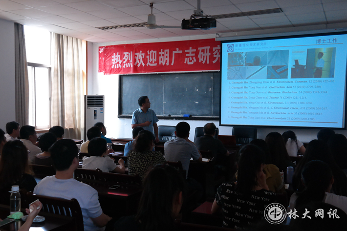 【林大网讯】(文/环境学院 邓梁)7月4号,应环境科学与工程学院邀请,中国科学院新疆理化技术研究所研究员、博士生导师,瑞典于默奥大学客座教授,中组部青年“千人计划”成员胡广志在环境学院报告厅做了题为“碳纳米材料的重金属电分析应用研究”的学术报告。环境学院全体教师、博士生、研究生参加了本次报告。