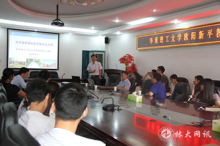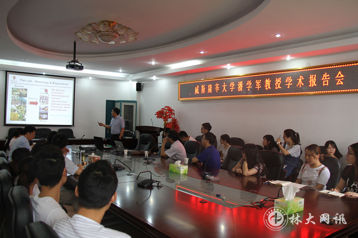 【林大网讯】(文/材料科学与工程学院 张哲)6月12日,美国威斯康辛大学生物系统工程系终身教授、国际木材科学院院士潘学军博士,华南理工大学教授、博士生导师欧阳新平博士应邀来我校讲学。潘学军、欧阳新平教授分别做了题为“Applications of molten salt hydrates in fractionation, conversion, and valorization of lignocellulosic biomass”、“木质素解聚制备单酚类化合物”的学术报告。材料科学与工程学院师生30余人参加了学术讲座。材料科学与工程学院副院长吴志平主持讲座。