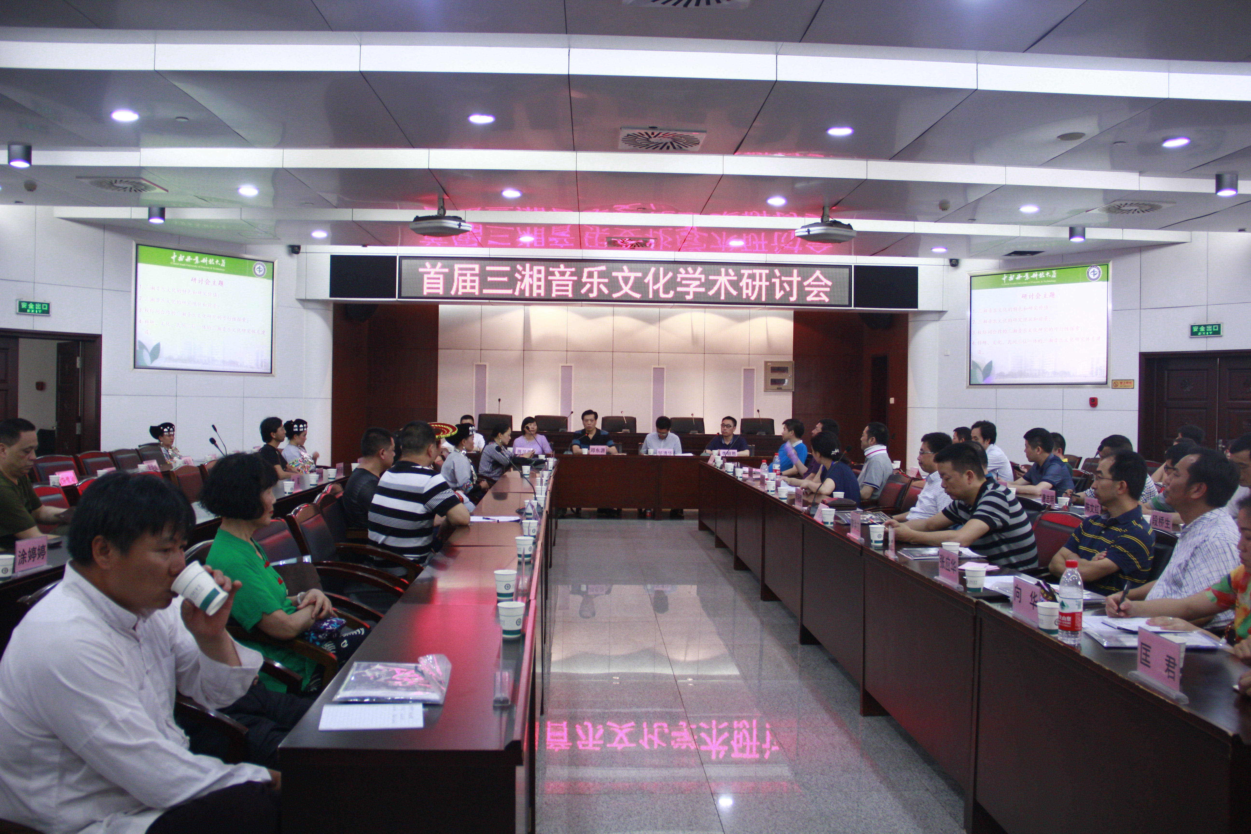 【林大网讯】 2016年6月18日下午,由中南林业科技大学三湘音乐文化研究所主办的首届三湘音乐文化学术研讨会成功举行。此次三湘音乐文化学术研讨会邀请到湖南省音乐家协会、湖南省文化厅、湖南省非物质文化遗产中心的领导和专家以及湖南各高校音乐院系院长(主任)、三十余位民间艺术家等人士就如何保护、传承和传播湖南民族民间音乐文化等相关议题进行研讨,通过政府和音协等机构、高校教育和研究群体、民间艺术家三方直接对话来彼此了解、沟通,期待以此为起点,通过三方的相互支持、合作,形成三湘音乐文化研究之氛围,共同为传承和保护湖南民族民间音乐文化,打造文化强省品牌尽一份力量。