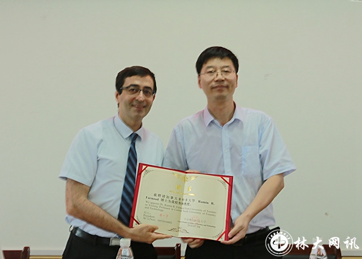 【林大网讯】 应我校木竹资源高效利用湖南省高校2011协同创新中心、木材科学与技术国家重点学科、林业工程湖南省重点学科的邀请,世界知名大学——加拿大多伦多大学教授Ramin R. Farnood 7月4-11日来我校访问交流。