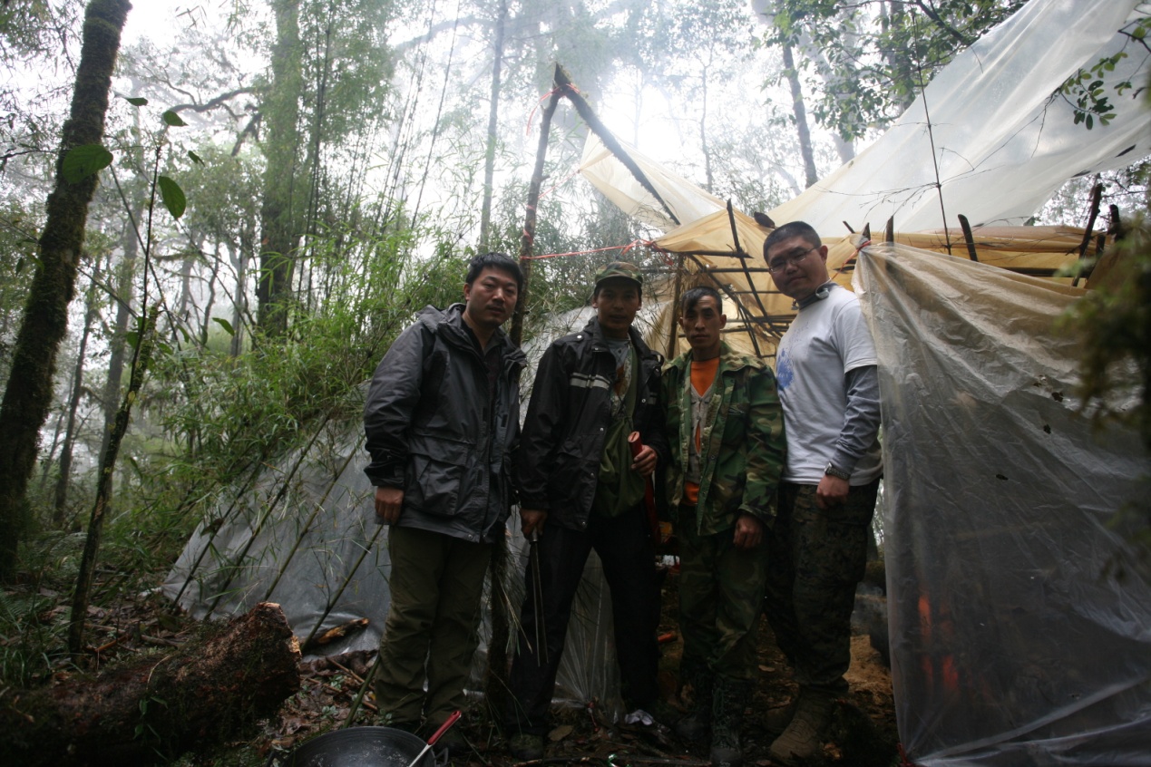 怒江金丝猴主要分布于高黎贡山中山湿性常绿阔叶林的原始森林中,林下竹林茂密、地形复杂陡峭、天气变幻莫测,这给野外观察研究带来了极大困难。通常跋山涉水搜寻数月才能够发现猴群一次,发现以后往往也只能够观察数小时,随即它们就消失在茫茫林海之中。鉴于此,我校向左甫教授研究团队除了以传统方法在野外搜寻猴群并跟踪猴群外,还采用了红外陷阱相机监测法协助调查。
