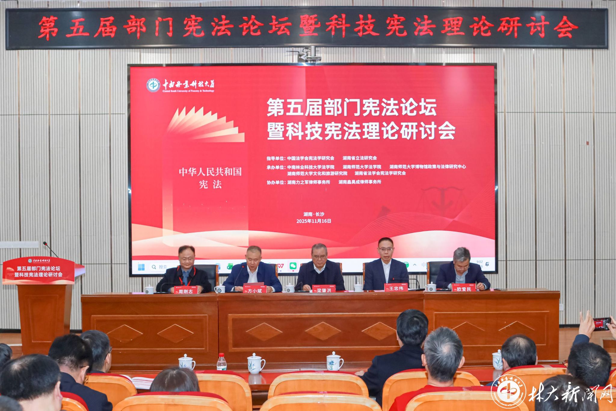 【林大网讯】(文/法学院)11月16日,第五届部门宪法论坛暨科技宪法理论研讨会在我校召开。湖南省立法研究会常务副会长、湖南省人大教科文卫委员会原主任委员梁肇洪,湖南省宪法学研究会会长、湘潭大学法学院院长欧爱民,我校党委副书记王忠伟等出席会议并致辞。来自全国多所高校、研究机构及实务部门的专家学者与师生代表参加会议。学校党委委员、宣传统战部部长方小斌主持会议。