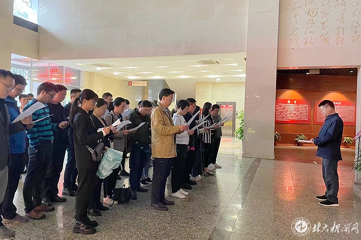 上午,大家来到陈树湘烈士纪念馆,在讲解员的带领下,回顾了陈树湘烈士短暂而光辉的一生,领略了他从开始跟随毛泽东投身革命时的意气风发、到反“围剿”中屡立战功的英勇无畏、最后绞肠自尽的壮烈人生。他树立了共产党员牢记使命、绝对忠诚的光辉榜样,在场的老师被他的战斗精神和英雄气概所震撼。全体党员来到陈树湘纪念广场,瞻仰烈士铜像,敬献花篮,并在学院党委书记陈文俊的带领下重温入党誓词,铭记党员初心。