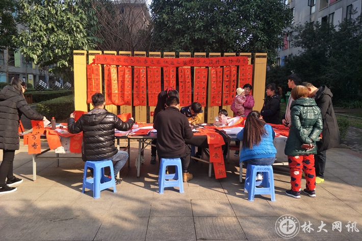 12月31日,我校树人书协走进文源社区彩虹都小区开展送春联志愿活动,活动吸引了大量居民驻足观看,前来领取春联的居民们纷纷表示感谢。本次活动共送出近300副春联,文源社区负责人表示此次活动不仅弘扬了传统民俗文化,而且展示了林科大学子的风采。
