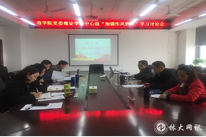 【林大网讯】(文/商学院 徐钰婷)1月10日下午,商学院党委理论学习中心组在文综楼南1206会议室召开“加强作风建设”学习讨论会,中心组全体成员出席会议,会议由商学院党委书记陈文俊主持。