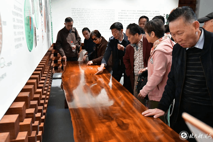 校园游漫步活动由林学院“林业科技馆”、材能学院“木竹博物馆”、家居学院“中国传统家具艺术陈列馆”和生态教育实验基地新植物园4个展馆(景点)打卡点组成。在各个展馆(景点),各位离退休老同志仔细聆听讲解员志愿讲解,了解学校的深厚文化底蕴和丰硕的学科成果,感受学校高质量发展新征程上展现出的新气象和新作为。他们精神矍铄、热情高涨,结伴而行、步伐稳健,脸上洋溢着幸福的笑容。
