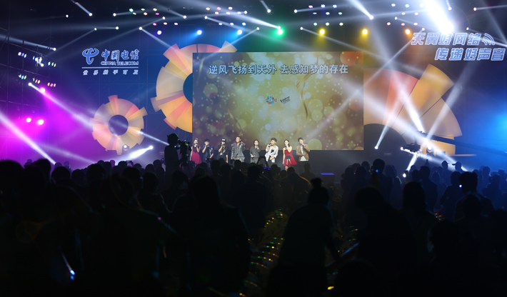 林大网讯 10月26日晚,第一季中国好声音学员吴莫愁、金池、王克携手第二季好声音学员毕夏、张目,空降我校体艺馆。在中国好声音百城百场演唱会长沙站的舞台上为歌迷带来了一场听觉盛宴。