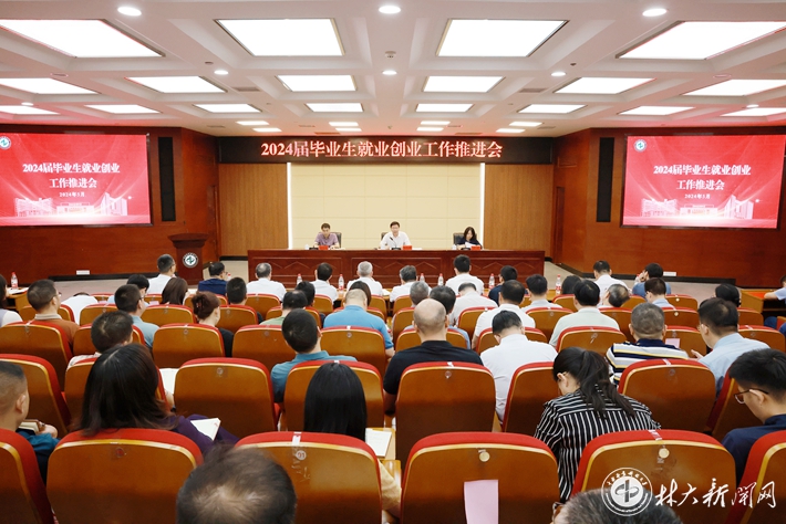 ▲学校在博文楼立德厅召开2024届毕业生就业创业工作推进会