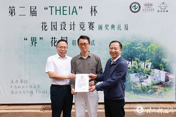 【林大网讯】(文/风景园林学院)6月5日,第二届“THEIA”杯花园设计竞赛颁奖典礼暨“界”花园捐赠仪式在博文楼立德厅举行。学校党委副书记王忠伟,2005级风景园林专业校友、提亚生态科技(浙江)有限公司总经理郑诚出席活动。学校党政办、教务处、研究生院、基建处、后勤管理处、校友联络中心、风景园林学院等单位负责人参加活动。