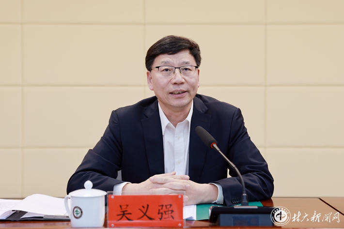 ▲中国工程院院士、党委书记吴义强传达上级有关精神并讲话