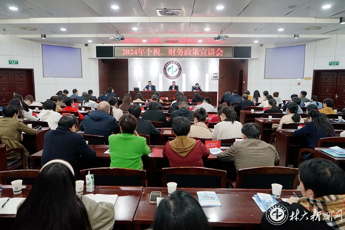 【林大网讯】(文/计划财务处)3月27日上午,个税、财务政策宣讲会在崇德楼四楼4会议室举行。学校副校长王忠伟和省税务局第二分局副局长黄一鸣出席,会议由计划财务处处长张江主持,学校各部门(单位)相关负责人、行政秘书及财务报账员等参加会议。