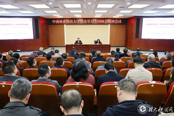 仇怡在主持时指出,全校各级党组织、各部门、各单位,要把学习贯彻全国两会精神特别是习近平总书记的重要讲话精神作为重要政治任务,聚焦发展新质生产力,对接国家战略所需,持续加强科技创新,推动深化改革,在推进中国式现代化的新征程中主动作为、敢于担当、勇于创新,为实现社会主义现代化强国目标贡献中南林力量。(摄影/王天宏 编辑/陈名虎 审核/周预分)