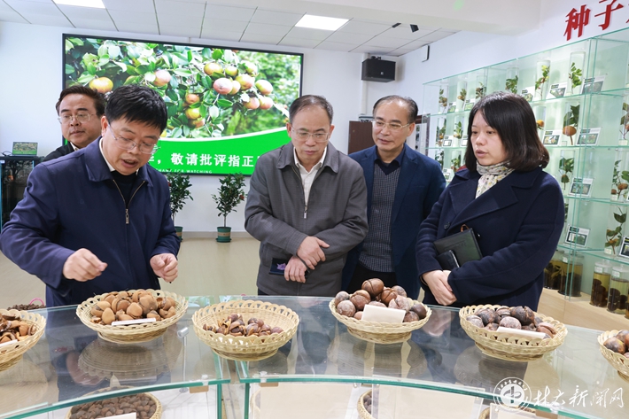▲湖南城市学院校长何振一行参观考察岳麓山实验室经济林品种创制中心