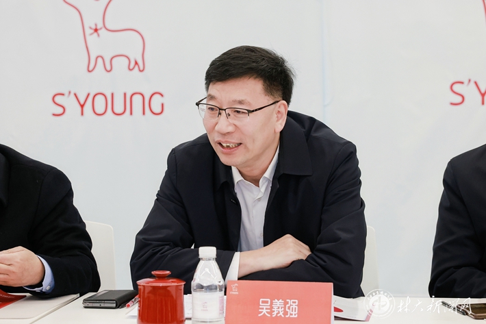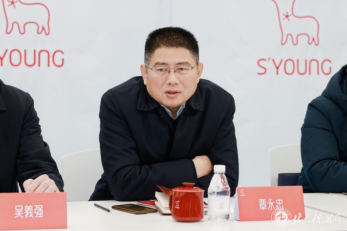 【林大网讯】(文/科技处)2月4日上午,中国工程院院士、学校党委书记吴义强率队赴水羊集团出席校政企合作交流座谈会并讲话。湖南省药品监督管理局党组成员、副局长(主持工作)覃永忠、水羊集团公司董事长戴跃锋出席合作交流座谈会。座谈会由水羊集团研发与质量总监张廷志主持。