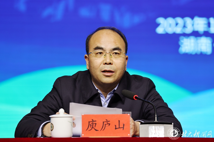 ▲湖南环境生物职业技术学院党委副书记、校长庾庐山讲话