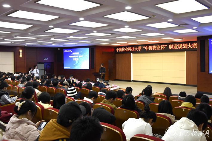 【林大网讯】(文/招生就业处 刘洋)1月8日晚上,中南林业科技大学首届“中海物业杯”大学生职业规划大赛决赛在学校立德厅举行。副校长朱道弘,中海物业集团长沙分公司总经理崔登杰出席,中海物业、中铁五局、五矿二十三冶、华为湖南公司、湖南师范大学等单位的相关专家受邀担任评委。