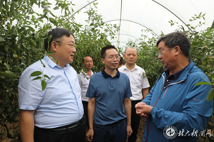 ▲专家服务团考察鲜食枣裂果防治情况