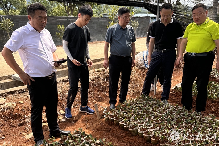 ▲专家服务团考察众森林业科技有限公司油茶种苗繁育情况